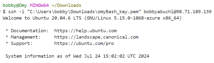 So I am on my Windows machine, and needed to connect to Linux Machine on Azure. I had GitBash installed so I can run Bash commands. I can access GitBash from VSCode terminal as well.
