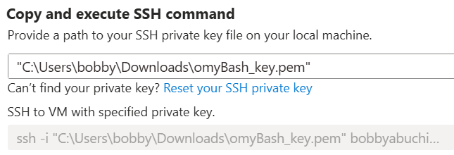 3. Provide a path to your SSH private key file on your local machine, and copy the SSH to VM command.