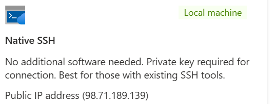 2. Select Native SSH. Your Linux VM should be protected with SSH public/private key or username and password.